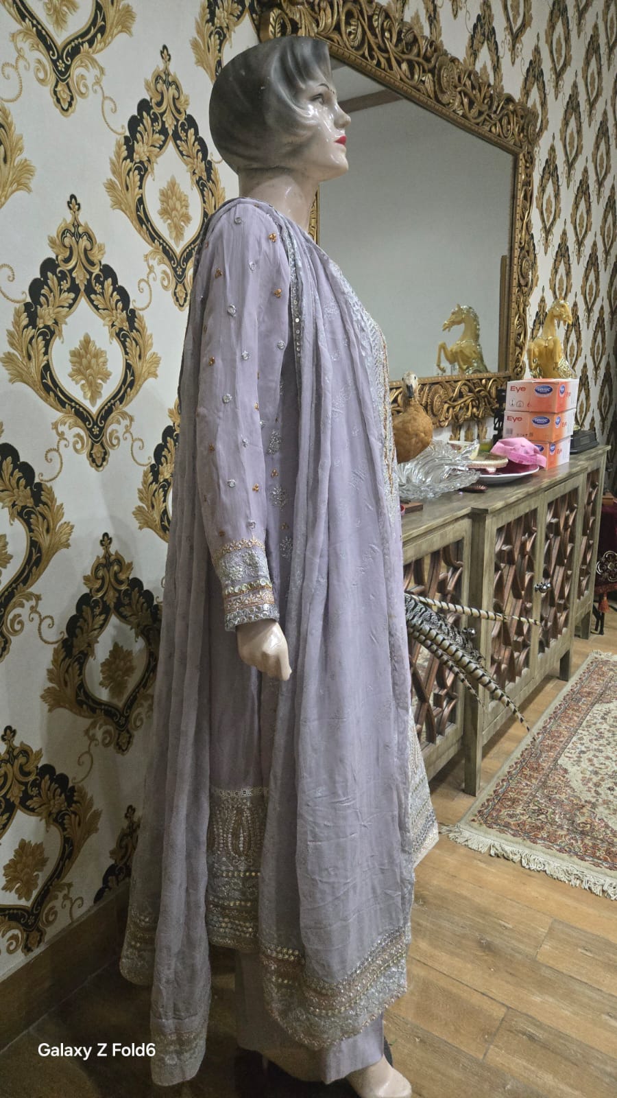 A soft and elegant lilac chiffon suit, flowing with grace and lightness. Paired with a matching dupatta, this ensemble exudes feminine charm and effortless sophistication — perfect for daytime events or festive gatherings.